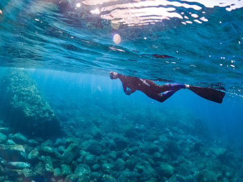 Snorkelling with Oceanológico means that you will be equipped with high-end gear for your snorkel adventure. We will provide you with an environmentally friendly neoprene suit, which will keep you pleasantly warm, freediving fins that give you added propelling power and, of course, an extra comfortable mask and snorkel. Additional gear for those, who'd like to try skin diving and dive down with a weight belt, is also available - along with our technical guidance.